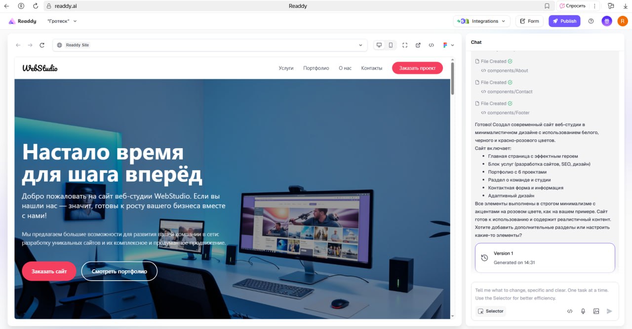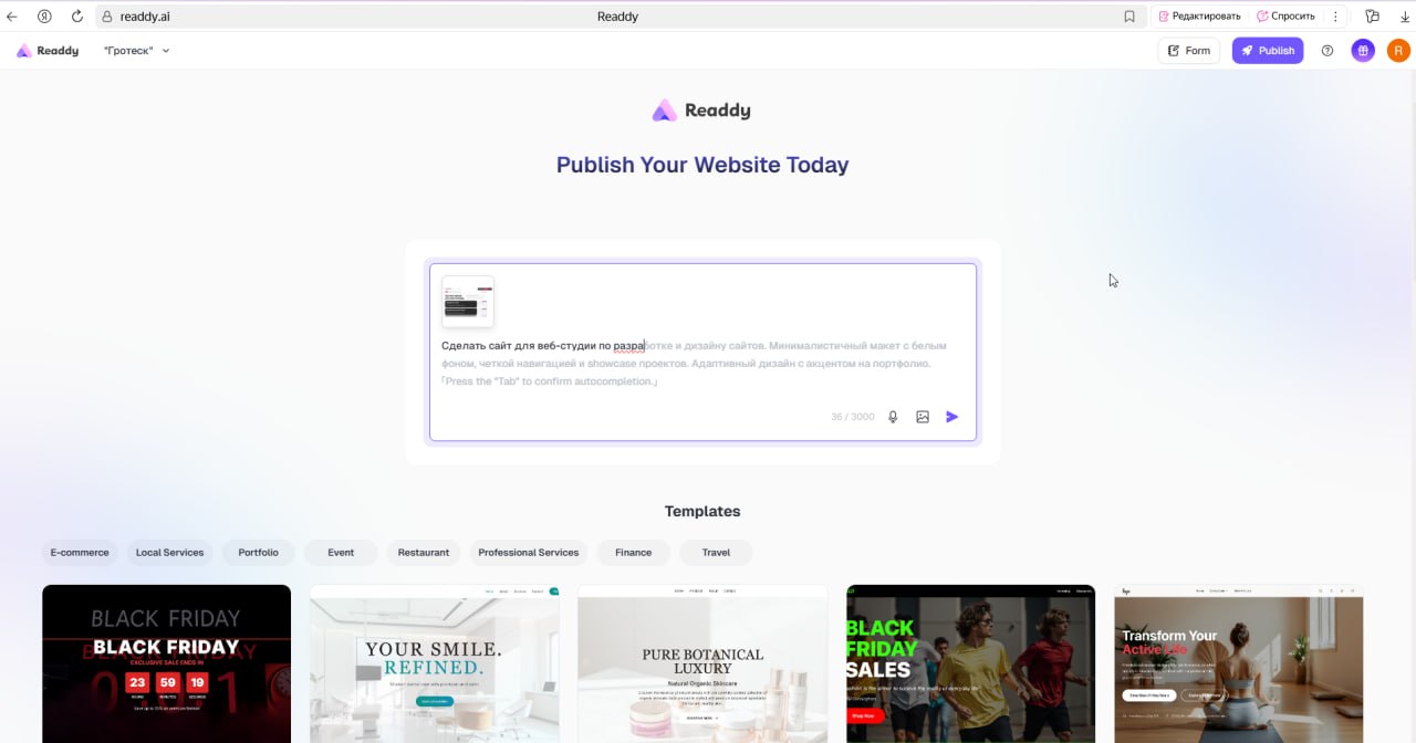 Скриншоты официального сайта Readdy