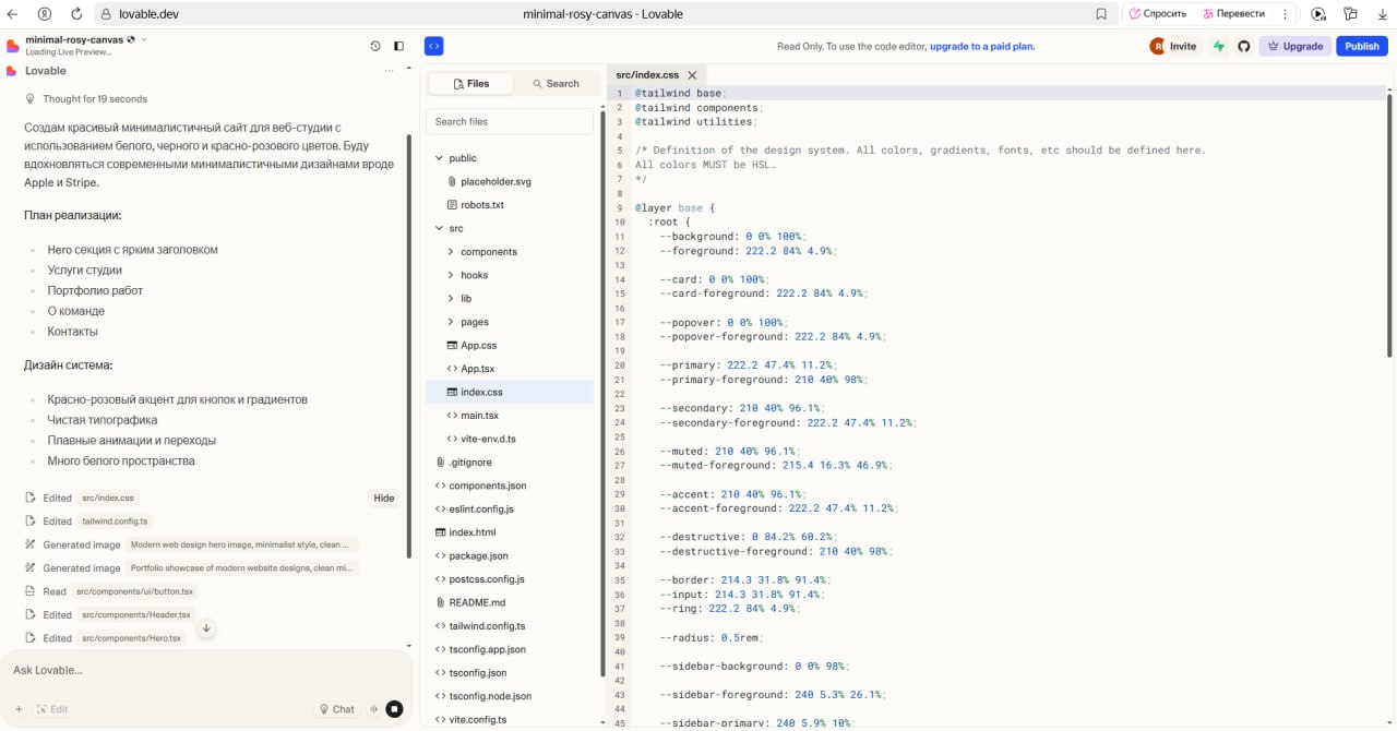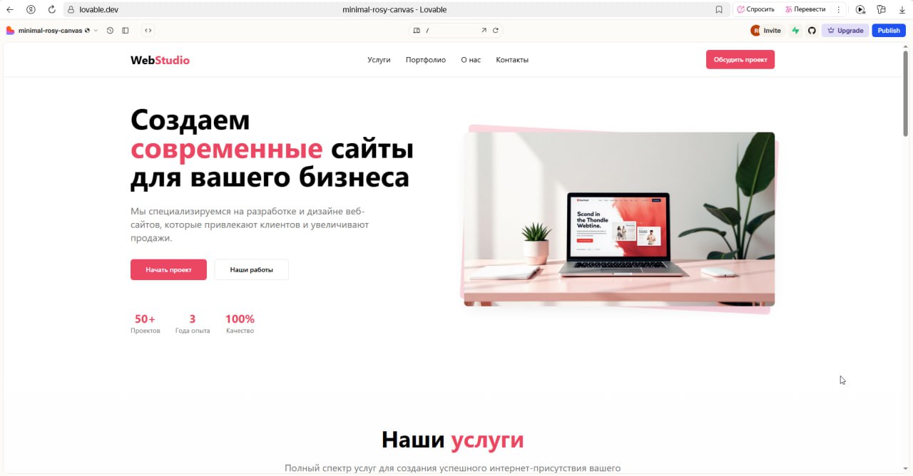 Скриншоты официального сайта Lovable